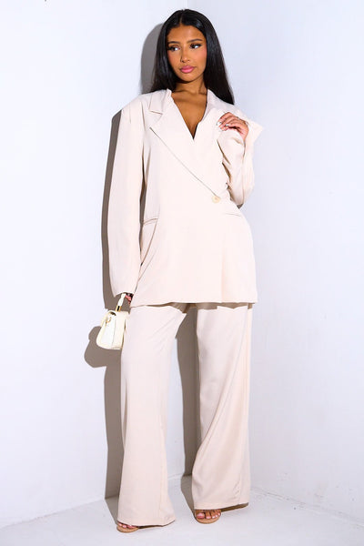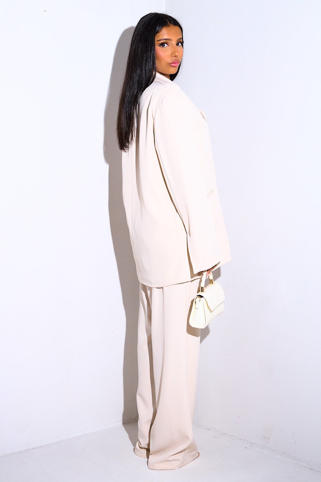 Ensemble 2 pièces beige blazer + pantalon à pinces