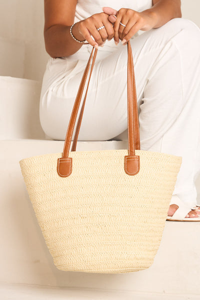 Panier en paille tressée avec élégance, doté de anses délicates pour un port raffiné. À l'intérieur, une fermeture éclair discrète assure la sécurité de vos essentiels, alliant praticité et style intemporel.
