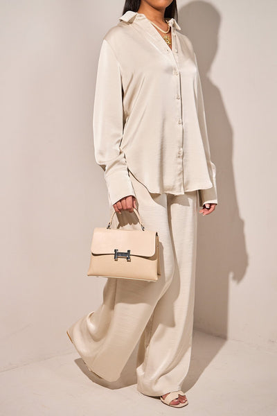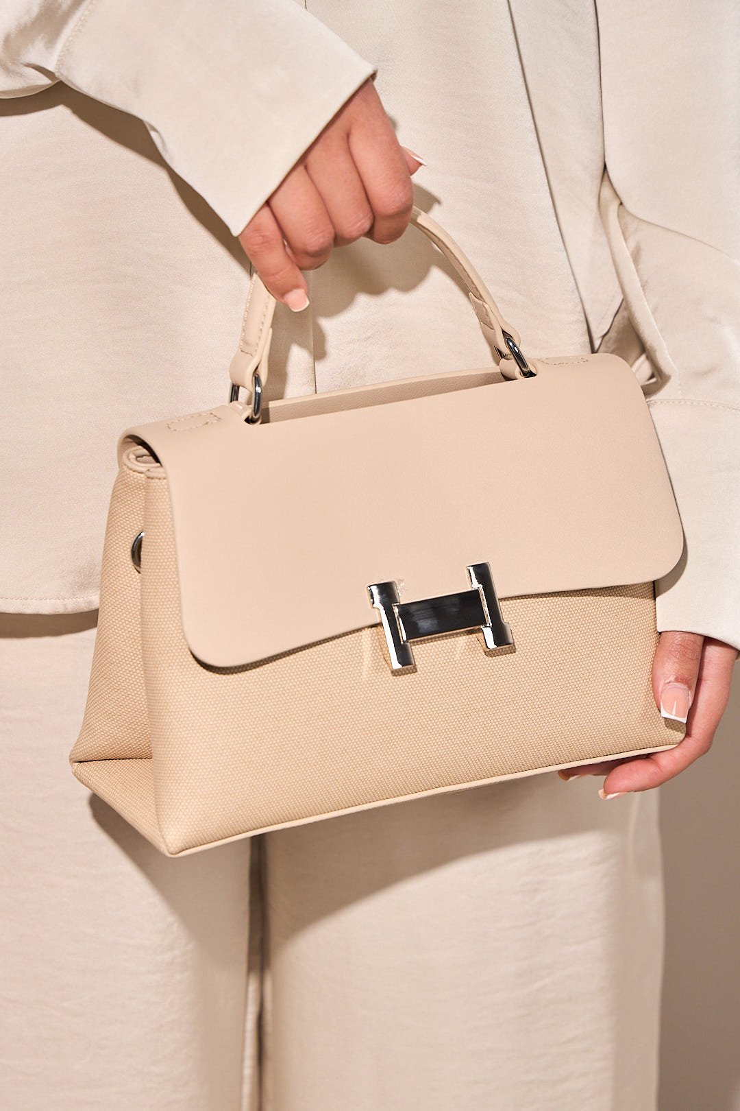 Sac à main en simili cuir beige, doté d'une bandoulière élégante et d'une fermeture aimantée discrète. Ce modèle raffiné présente un double compartiment zippé, complété par des poches intérieures astucieuses, alliant praticité et style intemporel. Sac à main en simili cuir beige Sac à bandoulières / Fermeture aimanté Double compartiment à zip + poches intérieur